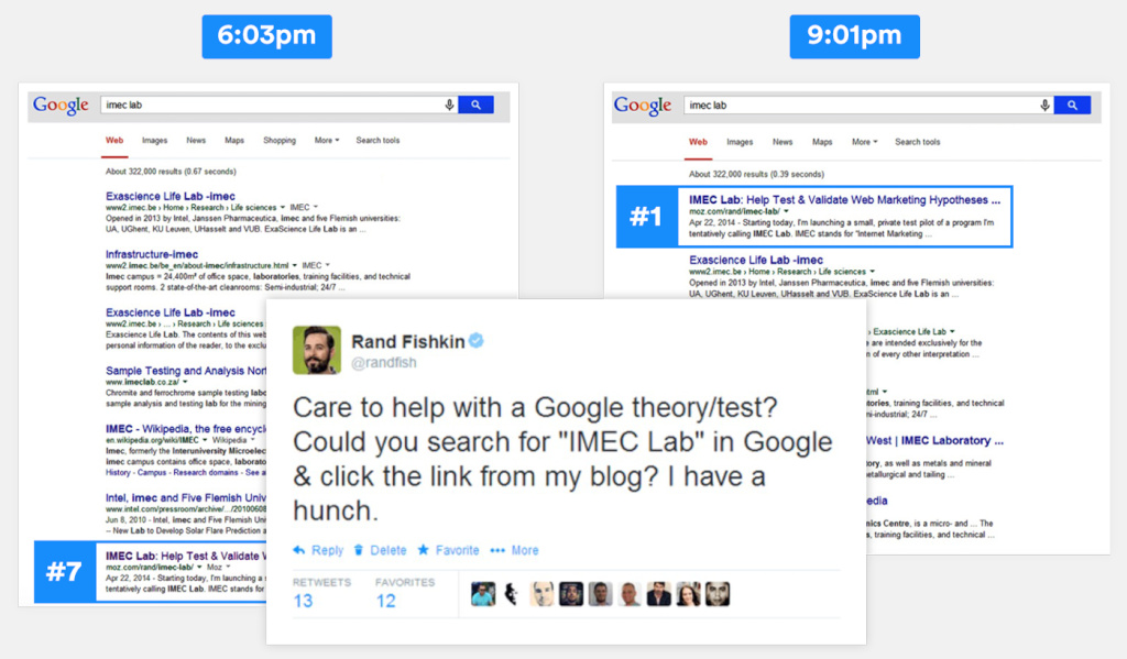 These were real people, making real clicks. This was the first real indication that click through rate (CTR) was a factor that could heavily move organic results in the SERPs.